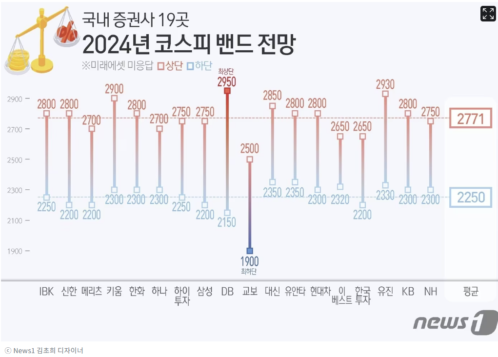 출처 : "코스피, 내년 2950까지 오른다"…'금리 인하' 기대감에 장밋빛 전망 - 뉴스1
